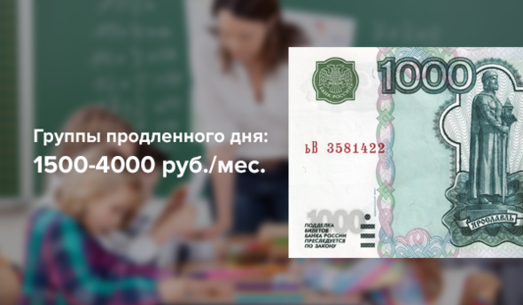 Этот пункт касается в большей степени родителей детей начальных классов. Согласно закону об образовании, ребёнок имеет право бесплатно находиться в школе в течение двух часов после окончания занятий. Школа обязана предложить ученикам до 10 часов в неделю внеурочной нагрузки. Это занятия по интересам, проектная работа, классные часы, походы, театры,кино, познавательные мероприятия. Но посещение дополнительных групп продлённого дня с кратковременным пребыванием детей входит в число платных услуг. Закон позволяет школам самим выставлять для родителей цену за пребывание ребёнка в учебном заведении после уроков, снижать размер указанной платы и даже не взимать её с отдельных категорий родителей. Услуга по присмотру и уходу в группе продлённого дня обычно стоит от 1 500 до 4 000 рублей.